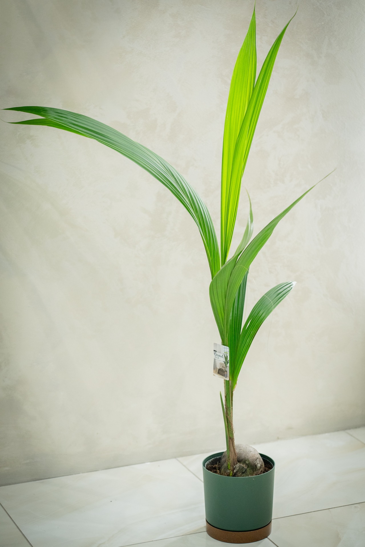 Kokosová palma vnesie do interiéru dovolenkovú atmosféru a tropický nádych. Ideálny ako dizajnový solitér do moderných priestorov.