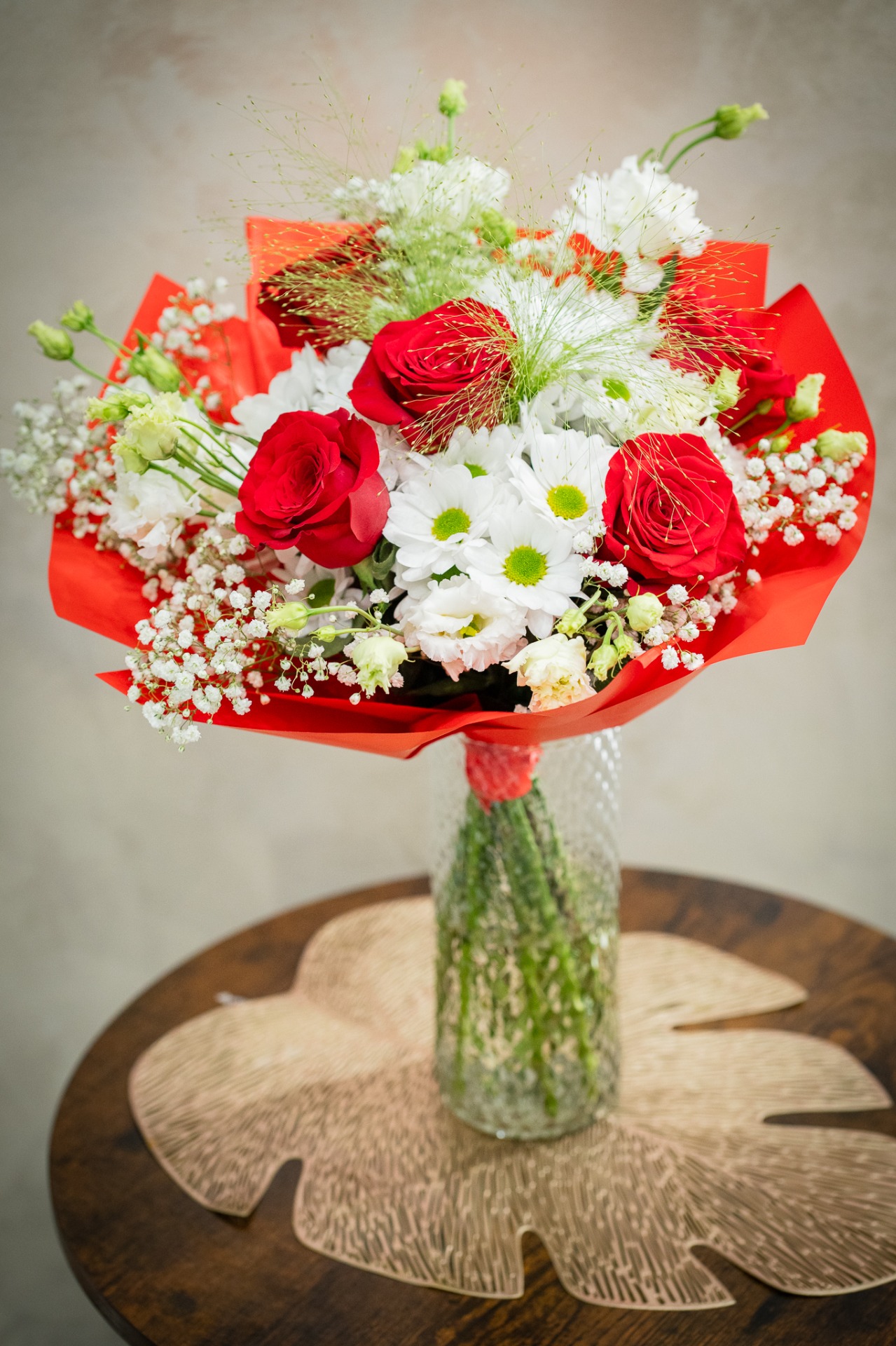 Upozornenie: doručené kytice sa môžu mierne líšiť od tých, ktoré sú uverejnené na e-shope. V prípade nedostupnosti niektorého kvetu môže byť kvet nahradený iným. Počet kvetov, farebná paleta a hodnota kytice však zostane zachovaná.